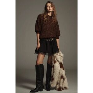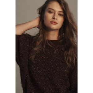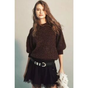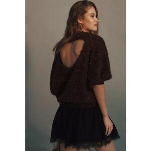 MAEVE The Violetta Short Sleeve Tinsel Sweater NWOT open back chocolate Brown
