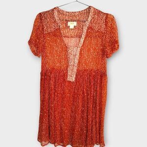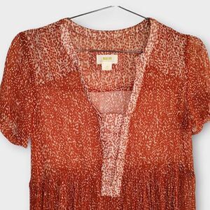 MAEVE Womens Dress Sz XS Semi Sheer Orange Short Sleeve Beachy Swiftie Adrian