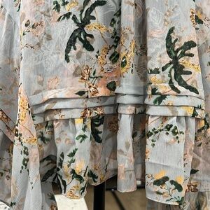 MAEVE by ANTHROPOLOGIE Floral Sheer Ruffle Asymmetrical top