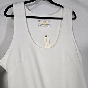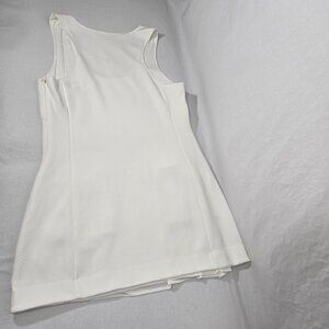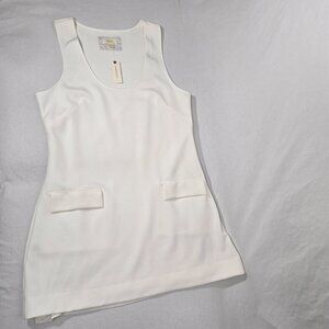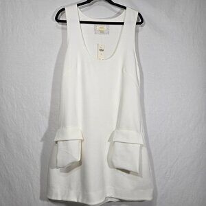 MAEVE by ANTHROPOLOGIE Officecore Sirencore Executive Girl Elevated Basic Old Money Minimalist IVORY Stretchy Textured Knit Sleeveless Scoop-Neck Pockets Silhouette Mini Dress Size XL.