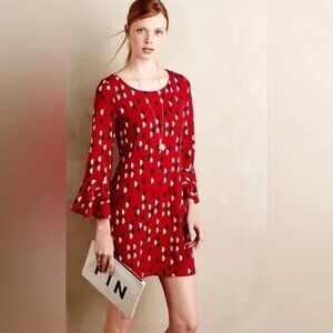 MAEVE by anthropologie RED Mini Dress Long Flounce Sleeves X Small