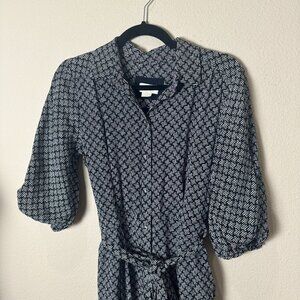 MAEVE for Anthropologie Myka Black Print Wide Leg Jumpsuit with Tie Size 8