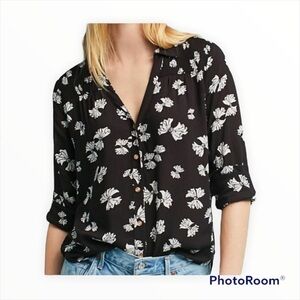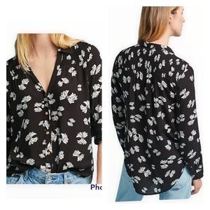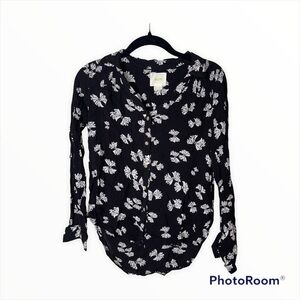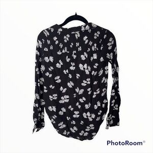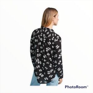 MAEVE ANTHRO Black White Emory Bow Print Button Down Long Sleeve Top