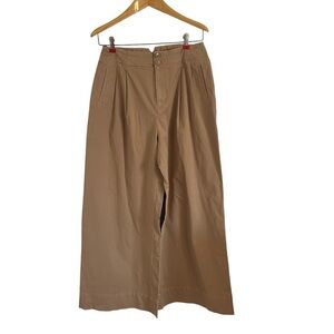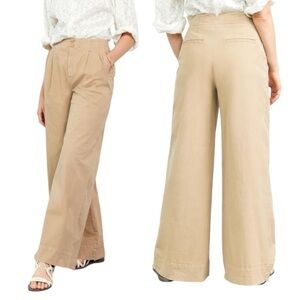 MAEVE x ANTHROPOLOGIE Pleated Wide-Leg Pants in khaki. OB1348519. Pleated detail. Side slant and faux back welt pockets. Double button and front zip.