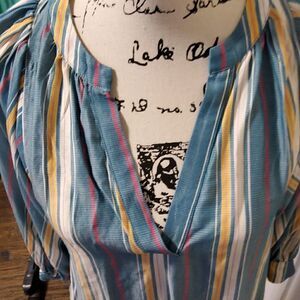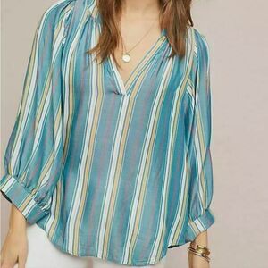 MAEVE ANTHRO ANTHROPOLOGIE Byron Striped Peasant Top Shirt XS Small Medium NWT
