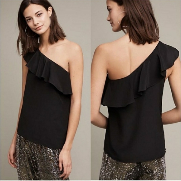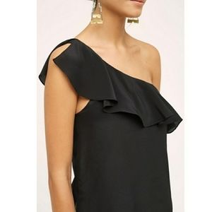 MAEVE| Silk One Shoulder Ruffle Top