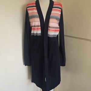MAGASCHONI BRAND. NAVY/ ORANGEBOMBRE STRIPE CARDIGAN LONG SLEEVE, NWOT, SZ. S