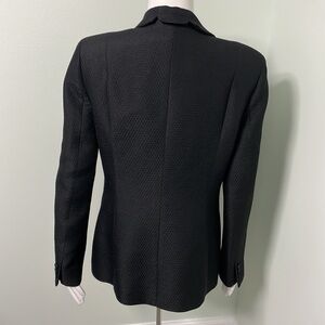 Fully lined black wool/silk blazer with quilted texture