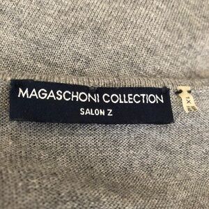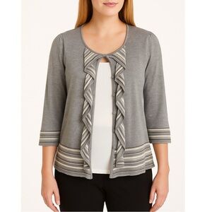 Gorgeous cashmere blend MAGASCHONI Collection Salon Z cardigan with grey stripe ruffle detail. Super soft! In mint condition from pet-free/smoke-free home. No flaws and no pilling. Care tag has been removed but it is dry clean only.