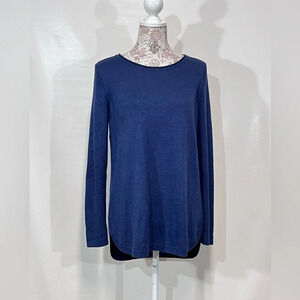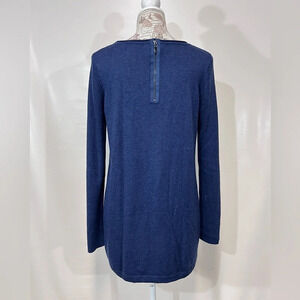 Navy blue MAGASCHONI crew neck sweater, size L. Top has long sleeves and zipper back detail.