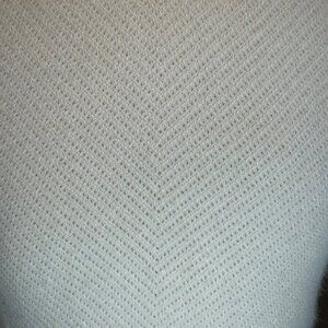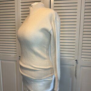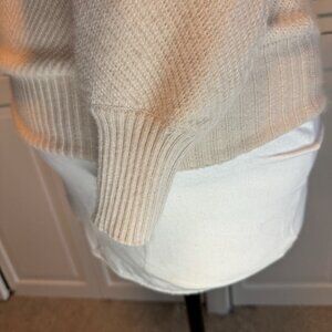 Beige long sleeve turtleneck, tone on tone texture, ribbed cuffs and hem, pit to pit 19”, length 26”