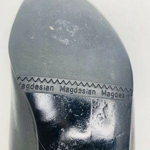 CALIFORNIA MAGDESIANS Black 6 1/2 Snake Embossed Patent Leather GOLD Hardware Flats. Condition is Pre-owned.