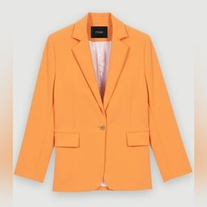 Elevate your style with this vibrant orange blazer. Perfect for any occasion, it adds a pop of color to your wardrobe. Featuring: Gold Hardware Shoulder Pads Faux Pockets Can be worn open or closed Size 38: Equivalent to an US size M PTP: 17.5" to 18" Length: 27.5" Bottom of Blazer across: 20" Sleeve Length: 23.5" Size 40: Equivalent to Size L PTP: 18.5" to 19: Length: 28" Bottom of Blazer across: 20.5" Sleeve Lengt" 24"
