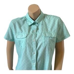 MAGELLAN Fish Gear Womens Size Large Polka Dot Vented Button Up Collared Shirt