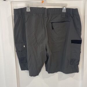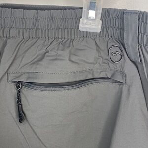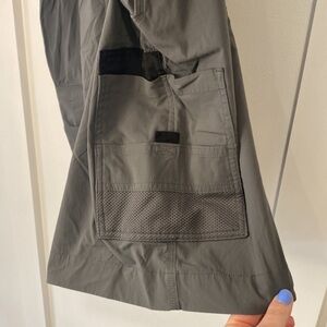 Has 2 hip pockets, 2 leg pockets, 1 zipper back pocket