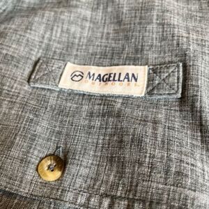 MAGELLAN Outdoors Men's Fish Gear Angler Fit Long Sleeved Vented Shirt Black Blend. Like new condition. See photos for details and measurements. Charcoal brushed color. Size Medium. fishing, boating, casual, dinner, tailgating, outdoor, hiking, handsome, beach, lake, outdoor