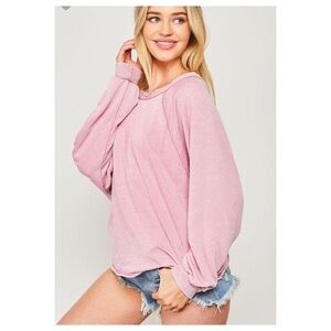 Such a pretty color, I couldn’t resist and I’m not a Pink fan at all! Made from a soft wash fabric, this sweatshirt features a relaxed fit, topped with a banded hem & dropped Dolman sleeves. Fabric is a Cotton Poly Blend and so soft & has a worn look, so cute! Another must have for sure!!!