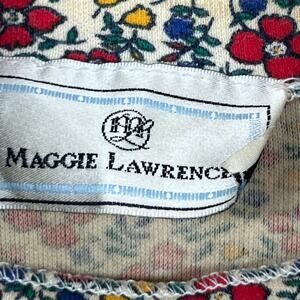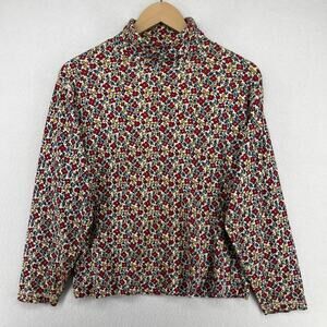 MAGGIE LAWRENCE Sweater M Ditsy Floral Turtleneck Pullover Cotton Blend Red VTG