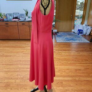 Maggy London Ruthie tie-neck dress in pink. Channel midcentury chic in this fit-and-flare midi styled with a jaunty tie at the V-neckline: the pendulum to the sway of the swingy skirt.