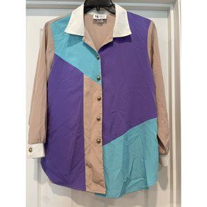 MAGGIE SWEET Spring Fantasy Long Sleeve Tunic Blouse Petite Medium. Fun piece for your wardrobe Made in USA, excellent condition, smoke free home