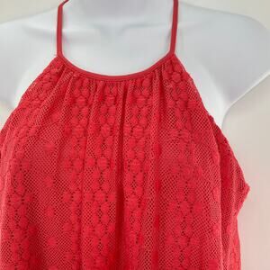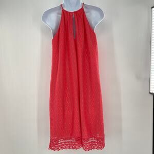 MAGGY LONDON Orange Lace Overlay Strappy Colorful Fun Sleeveless Swing Dress