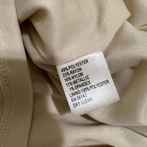 Super flattering comfy fabric of poly/rayon/nylon/metallic/spandex. Nice medium weight and some stretch.