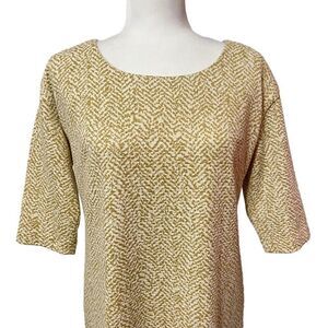 MAGGY LONDON Size 6 Metallic Gold White Sheath Dress Small