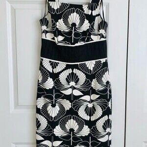 MAGGY LONDON WOMENS DRESS SIZE 10 FLORAL WHITE/BLACK SLEEVELESS SHEATH