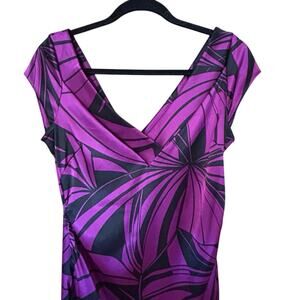 MAGGY LONDON Women’s Purple Black Sheath Ruched Midi Cocktail Dress Size 10