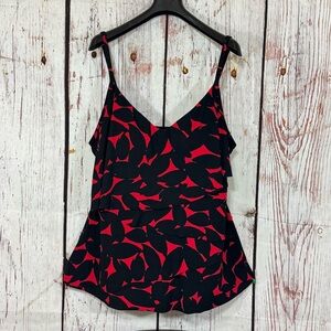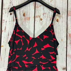 MAGIC SUIT tiered Black and Red Patterned Women's swimsuit Top in size 16 EUC