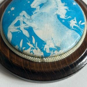 Really nice wooden wall plaque with unicorn artwork on it. See photos for condition - has minor wear consistent with age. Measures 5 3/4”.