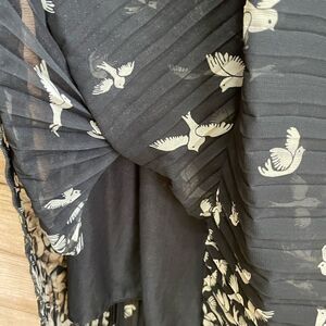 EXCELLENT CONDITION MAGIC PLEATED MAXI SKIRT IN BLACK AND CREAM PRINT