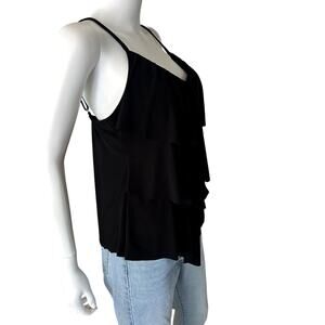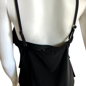 Get ready to turn heads with this stunning MAGICSUIT Black Solid Rita Ruffle V-Neck Tankini Swimsuit Top! This top offers a flattering fit and a touch of elegance with its ruffle detailing. The V-neck design accentuates your neckline, while the solid black color ensures versatility.