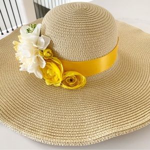 👒 MAGID Floppy Handmade Faux Flower Wide Brim Woven Paper Straw Hat