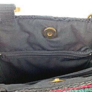 MAGID Multi Colored Striped Wheat Straw Double Wooden Handle Satchel