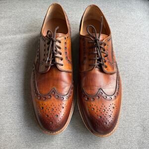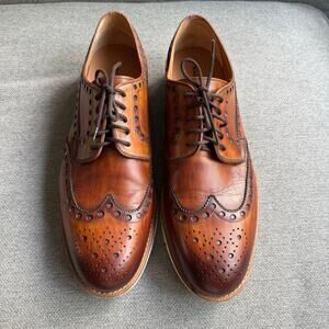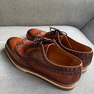 MAGNANNI 'Stefano' Cuero Brown Leather Wingtip Oxfords Brown Sz 14