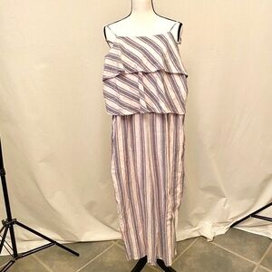 MAGNOLIA SKYE Preowned Jumpsuit Size Large, Elasticized Waist Ruffles Lightweight White : Blue / Light Red