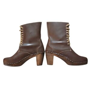 MAGUBA Handmade Brown Lace Up Boots Wooden Block Heel Ankle Boots sz 7