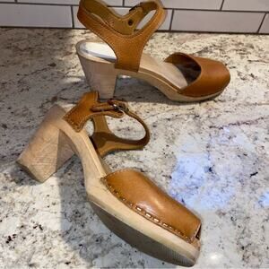 MAGUBA of SWEDEN $140 Bologna Women's Clogs Wooden Sandals Heels Tan EU 38 8-8.5