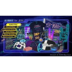 This is collectible merch from Super MAGfest Melee 2023, Music and Gaming Festival with a Super Smash Bros theme! This merchandise was released to celebrate MAGfest's 20th anniversary. Set includes: