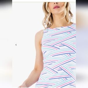 MAHI GOLD Ryder Dress in Chatham Cloth: Chart Your Course in Peony Pink. Size M