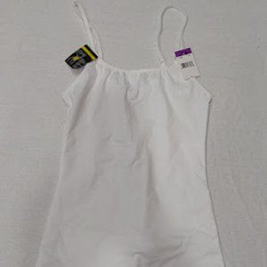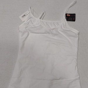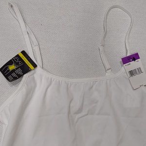 MAIDEN FORM, FLEXEES, LONG LENGTH, WHITE CAMILSOLE, SMOOTHING, SLEEK, LAYERING PIECE OR ALONE, NEW WITH TAGS, ADJUSTABLE STRAPS, WOMEN'S SIZE 2XL, BUST 32 INCHES, WAIST 38 INCHES, LENGTH 28 INCHES(7oz)