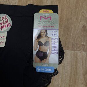 MAIDENFORM SHAPEWEAR LACE BRIEF FIRM SIZE S BLACK COOL COMFORT TUMMY SUPPORT NEW