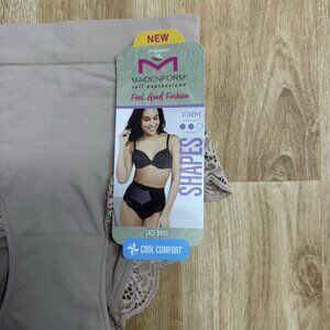 MAIDENFORM SHAPEWEAR LACE BRIEF FIRM SIZE S NEUTRAL SEAMLESS TAGLESS NEW