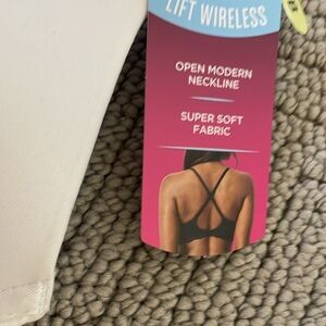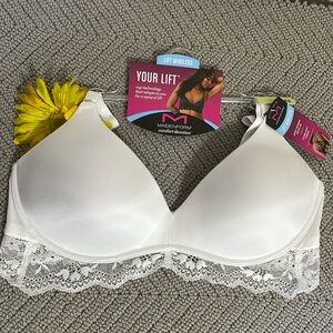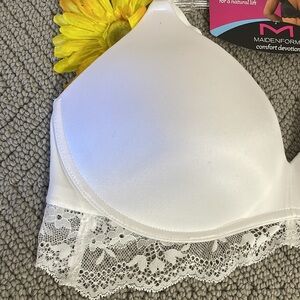 MAIDENFORM white lace bra, lift wireless open modern neckline super soft fabric adjustable straps, New with tag Size 38B