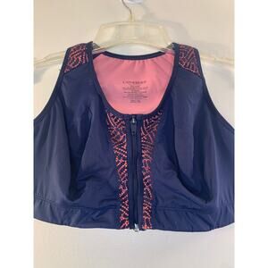 MAIDENFORM Women’s Blue Pink Front Zip Sports Bra / Size: 42DD