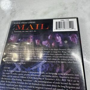 Hard-to-find Japanese horror film MAIL (2005) from the Global Fright Cinema series. This psychological horror follows a private detective with psychic abilities who inadvertently stirs up vengeful spirits, leading to eerie and terrifying consequences. Starring Chiaki Kuriyama (Kill Bill), this supernatural thriller delves into the dangers of contacting the spirit world. A must-have for collectors of rare and hard-to-find Asian horror films.