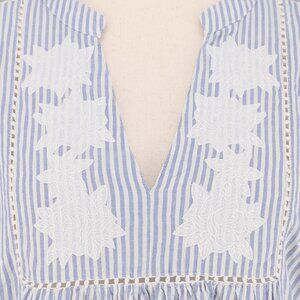 MAISON 123 PARIS Blue Striped V-Neck White Embroidery Flowy Blouse Size L