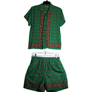 MAISON ARTICLE Button Down Block Paisley Hybrid Men's Small Shirt with Matching Shorts. Both Shirt and Shorts are size small with measurements below.