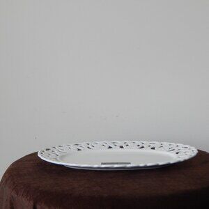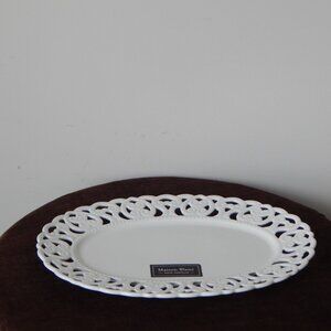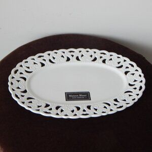 MAISON BLANC White Porcelain Cut Out Hearts Serving Oval Tray Platter 14x9.5 NWT